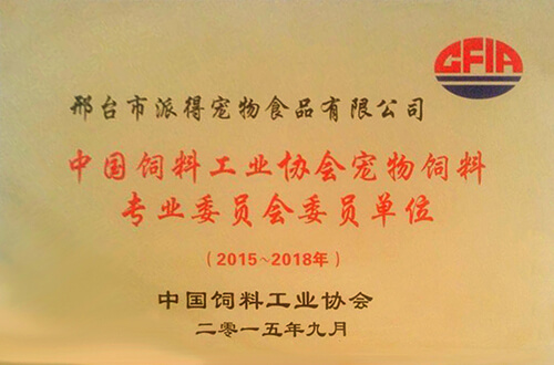 被授予“中國飼料工業(yè)協(xié)會寵物飼料專業(yè)委員會委員單位”稱號